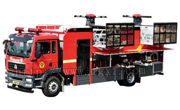 整车可搭载2到7架灭火类、侦查类、照明类等消防无人机及多种灭火设备及救援器材(存放数量根据无人机尺寸大小略有不同),可用于高层灭火救援、水上救援、火情侦查等场景。通过对火场进行持续控制,可弥补常规消防救援设备短板,适应复杂多变的火场灾情需求。