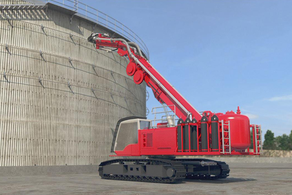 该装备采用标准的液压及机械接口,可以快速更换冲击锤、液压剪、液压抓手,即可专用于内浮顶罐的破拆灭火,也可以用于常规的破拆救援作业。